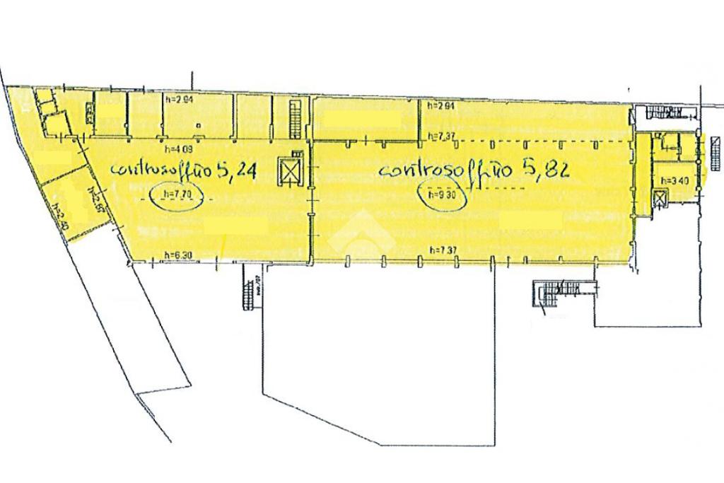 Il capannone ha una superficie complessiva di circa 1.300 metri quadrati e si sviluppa su due campate. L’immobile è composto da una superficie di circa 1.000 metri quadrati destinata a capannone, con altezza interna pari a 9,30 metri e altezza sottotrave di 7,70 metri, circa 40 metri quadrati adibiti ad uffici e circa 300 metri quadrati ad uso magazzino, situati al piano seminterrato, con altezza interna di 5,82 metri e altezza sottotrave di 5,24 metri.