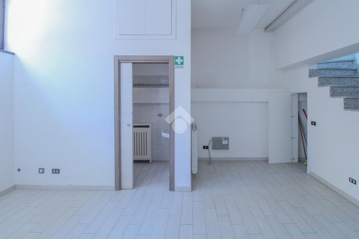 Il negozio misura circa 80 metri quadrati e si sviluppa su tre livelli di una struttura condominiale. La soluzione al piano terra misura circa 30 metri quadrati ed è dotata di un servizio igienico privato. Al piano seminterrato, accessibile tramite scala interna, l’immobile è di circa 35 metri quadri, con un servizio igienico privato. Inoltre è dotata di un piccolo soppalco di circa 15 metri quadrati, accessibile tramite scala interna. La struttura è munita dell’impianto di riscaldamento, dell’impianto elettrico e quello di illuminazione, inoltre è dotata del sistema di antincendio a idranti. L’ambiente risulta ben illuminato grazie alla presenza di un’ampia vetrata di ampie finestre. L’immobile, è servito dalla porta blindata ed è cablato.