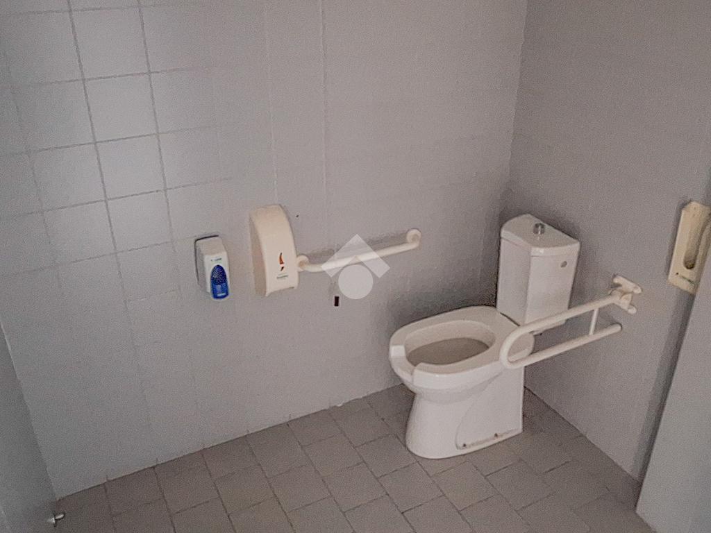 L'ufficio misura 450 metri quadrati ed è situato al su due livelli di una palazzina commerciale. La soluzione al piano terra è di 180 metri quadrati ed è divisa in 3 locali, con due servizi igienici a norma disabili con doccia. Inoltre ci sono 120 metri quadri attualmente adibiti a magazzino. La struttura al piano primo, accessibile tramite ascensore, troviamo 150 metri quadrati ed è dotata di due servizi igienici, con docce. L'ambiente è particolarmente luminoso grazie alla presenza di sei grandi vetrine e ampie finestre. L'immobile è dotato dell’impianto di riscaldamento, di condizionamento, dell’impianto elettrico e quello di illuminazione. Inoltre è controsoffittato ed è cablato.