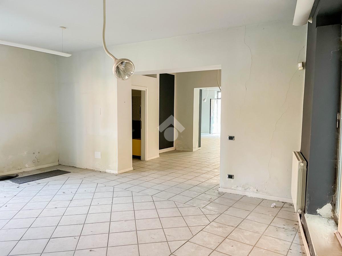 Proponiamo in locazione un ufficio con superficie di circa 150 metri quadrati, situato al piano terra di una struttura condominiale.