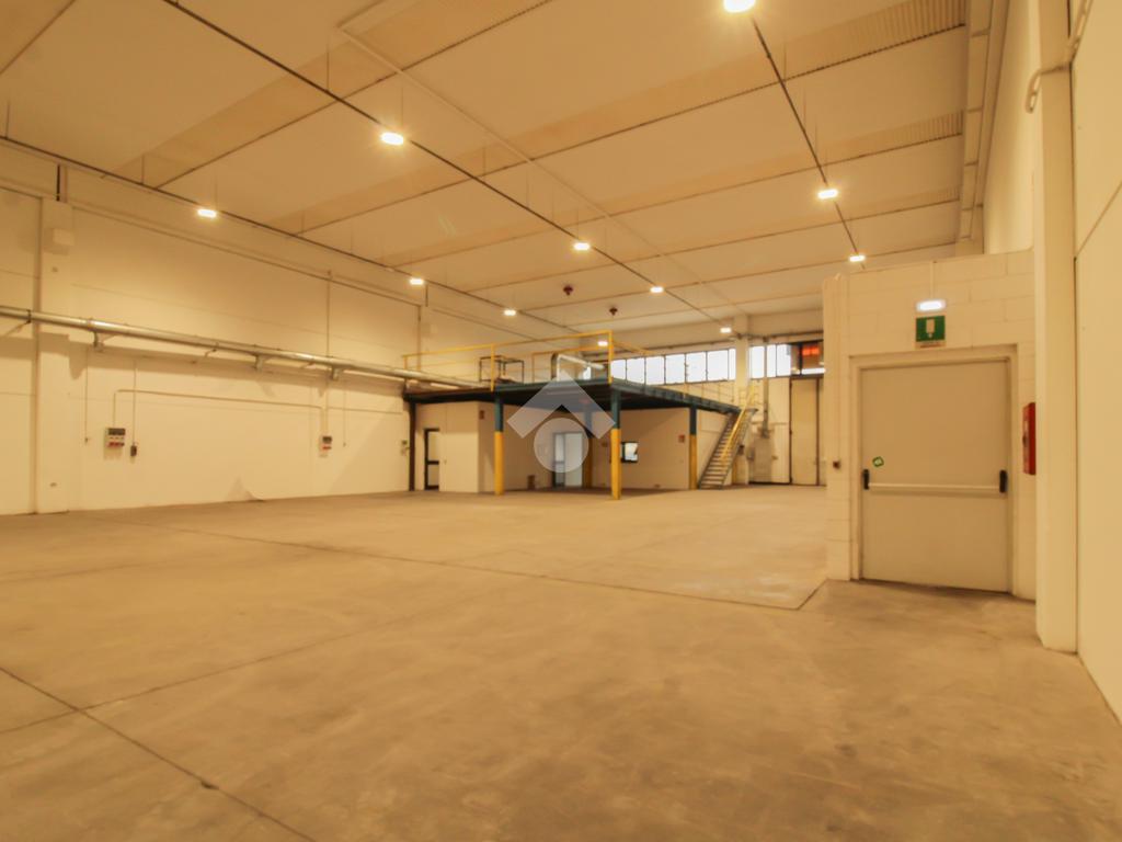 Proponiamo in locazione un capannone di 750 metri quadrati, comprensivo di 30 metri quadrati ad uso ufficio, completato da una comoda area esterna di circa 200 metri quadrati, per una superficie totale di 950 metri quadrati. L’immobile si presenta in ottime condizioni, con un’altezza interna di 7,50 metri. L’accesso al capannone avviene tramite un ampio portone alto 5,50 metri; inoltre, la proprietà è completamente recintata, con passo carraio. All’interno sono presenti tre bagni, oltre a una doccia con spogliatoio. Gli ambienti sono dotati di impianto elettrico e di illuminazione, dal riscaldamento e condizionamento a split negli uffici e da impianto Robur nel capannone.