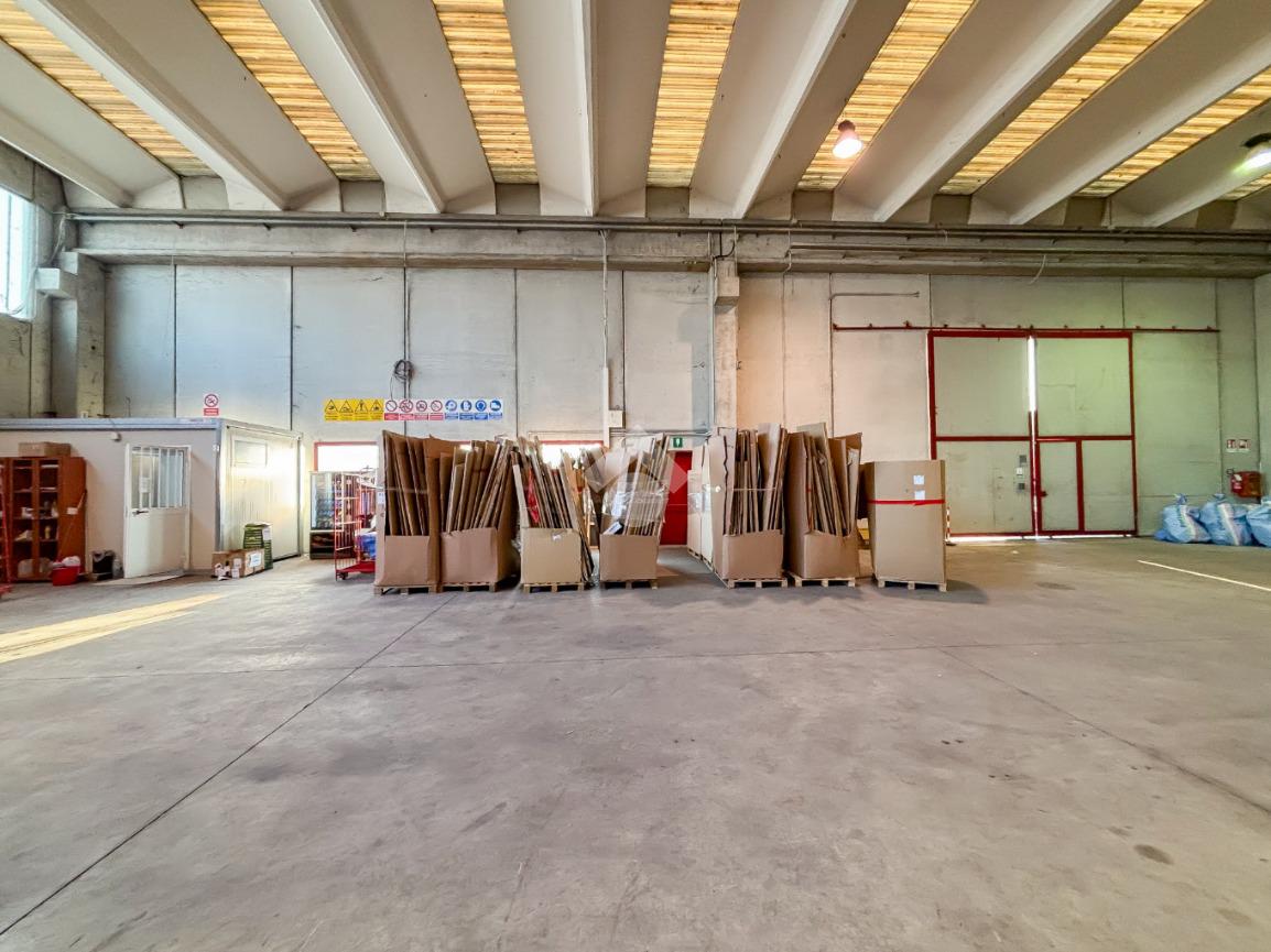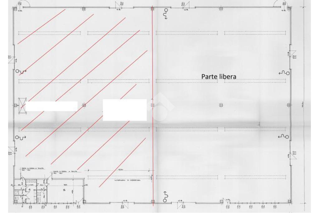 Proponiamo in locazione un capannone di circa 1.200 metri quadrati, suddiviso in tre locali, comprensivo di un’area uffici di circa 20 metri quadrati. L’immobile si sviluppa su due campate e presenta un’altezza interna di 8,00 metri, con altezza sottotrave di 7,50 metri. L’accesso al capannone è garantito da quattro ampi portoni, ciascuno di 5,00 metri di altezza e 5,00 metri di larghezza. L’ambiente è dotato di due servizi igienici con antibagno ed è completo di impianto elettrico, impianto di illuminazione e impianto di riscaldamento, collegato all’unità confinante.