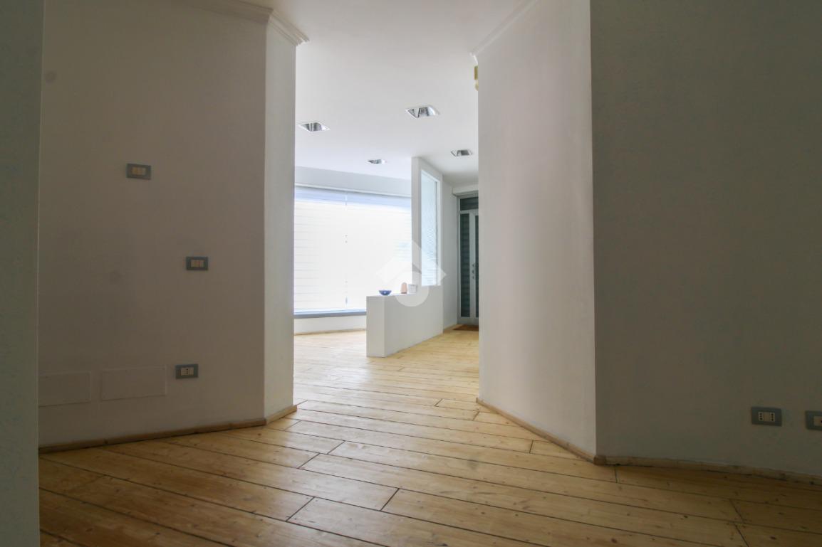 Il negozio misura circa 100 metri quadrati, è disposto al piano terra di una palazzina che si sviluppa su due livelli. La soluzione è caratterizzata da un ampio open space ed è inoltre dotata di un servizio igienico privato. L'ambiente risulta particolarmente luminoso grazie alla presenza di una grande vetrina, protetta dalla presenza di una saracinesca manuale. L'immobile, completamente controsoffittato, è dotato dell'impianto di riscaldamento e di condizionamento, l'impianto elettrico e di illuminazione.