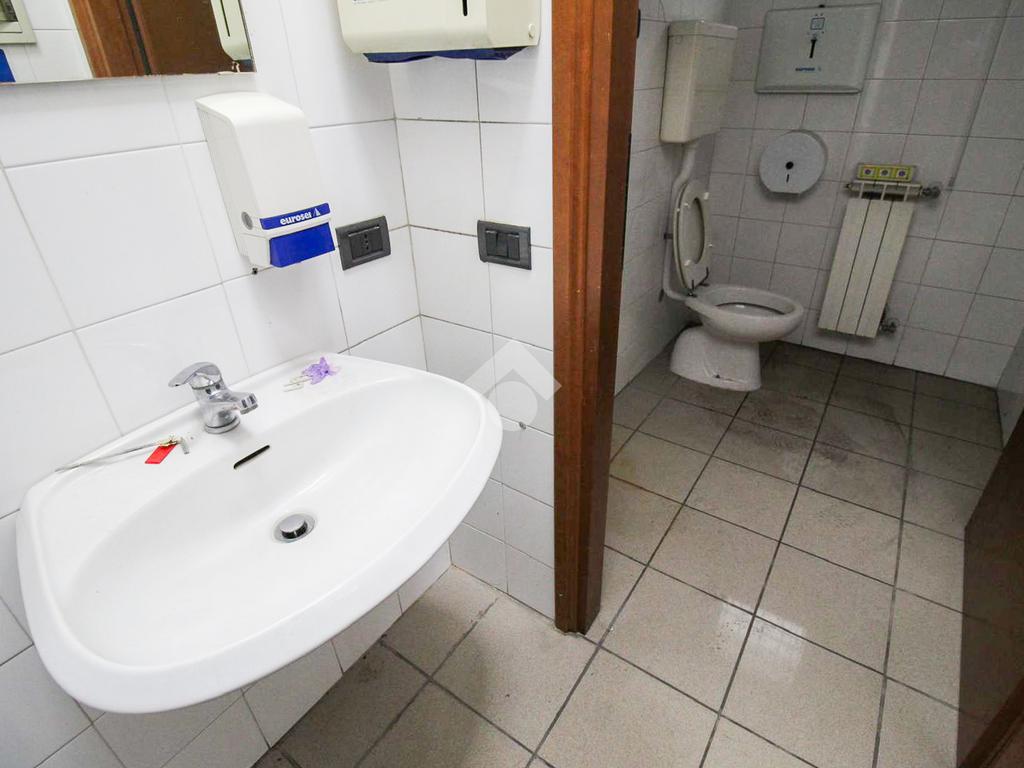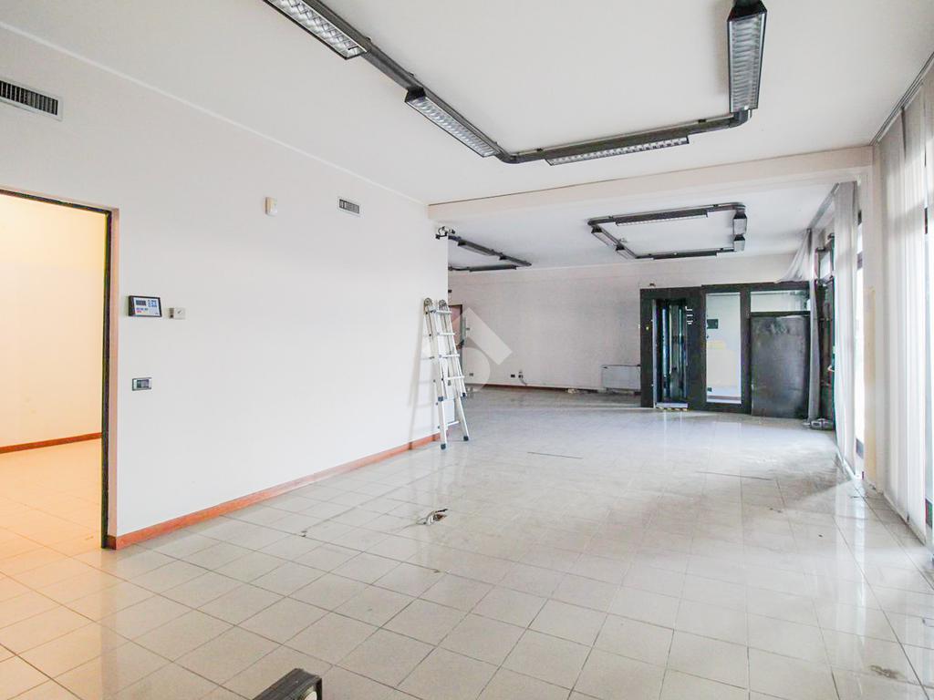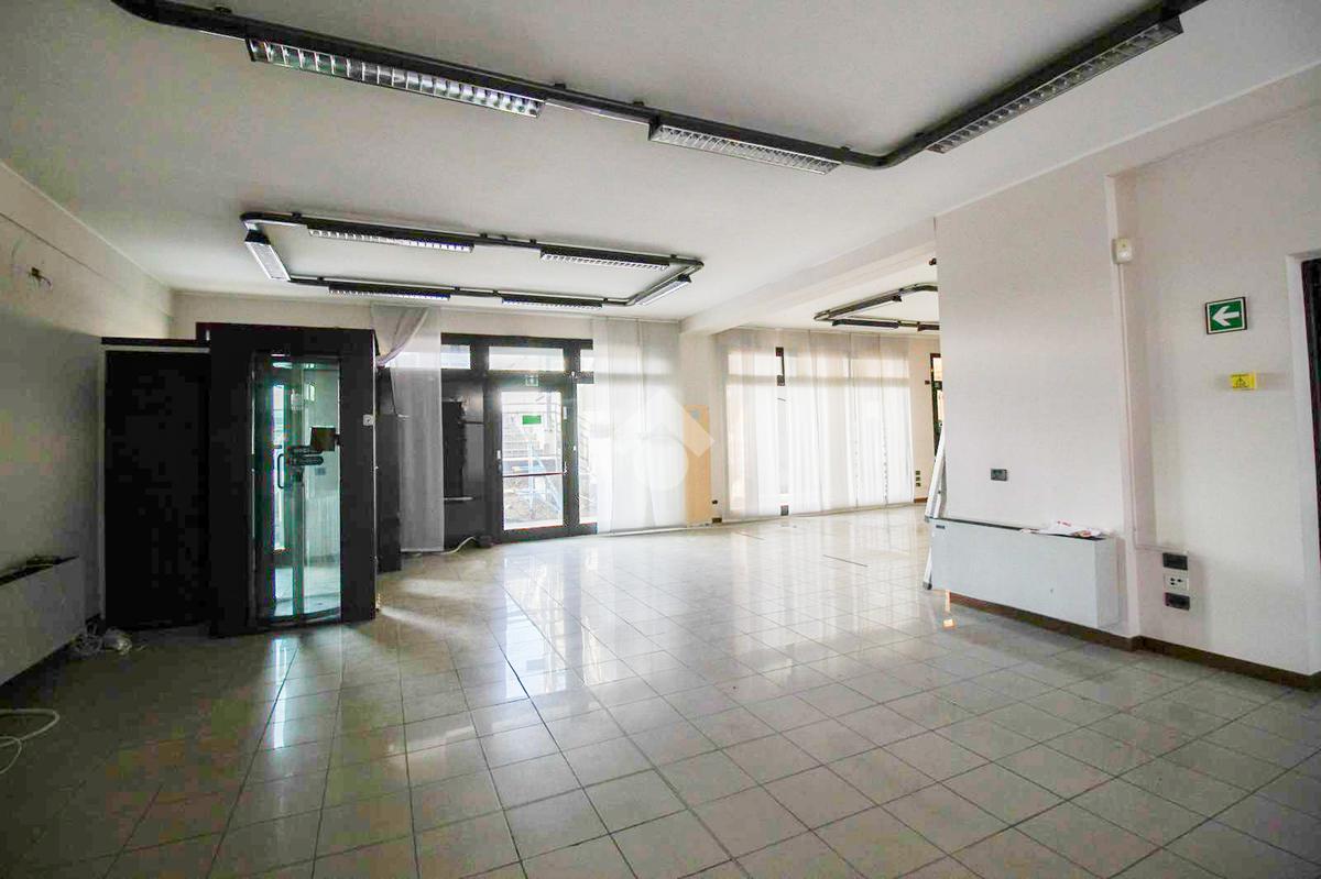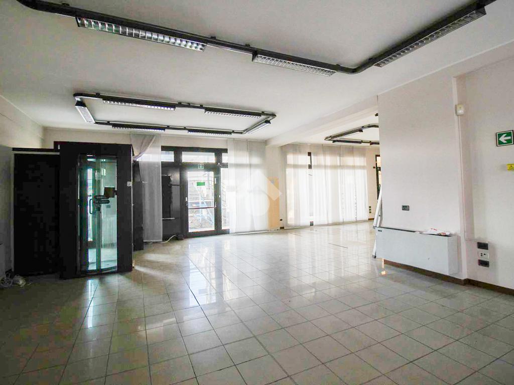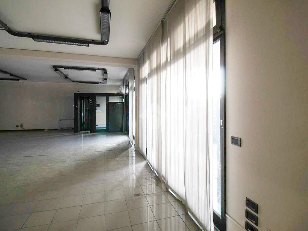 L’ufficio misura 150 metri quadrati ed è situato al piano terra di una palazzina che si sviluppa su due livelli. La soluzione è un open space ed è dotata di due servizi igienici privati a norma disabili. L'ambiente risulta particolarmente luminoso grazie alla presenza di dieci grandi vetrine.