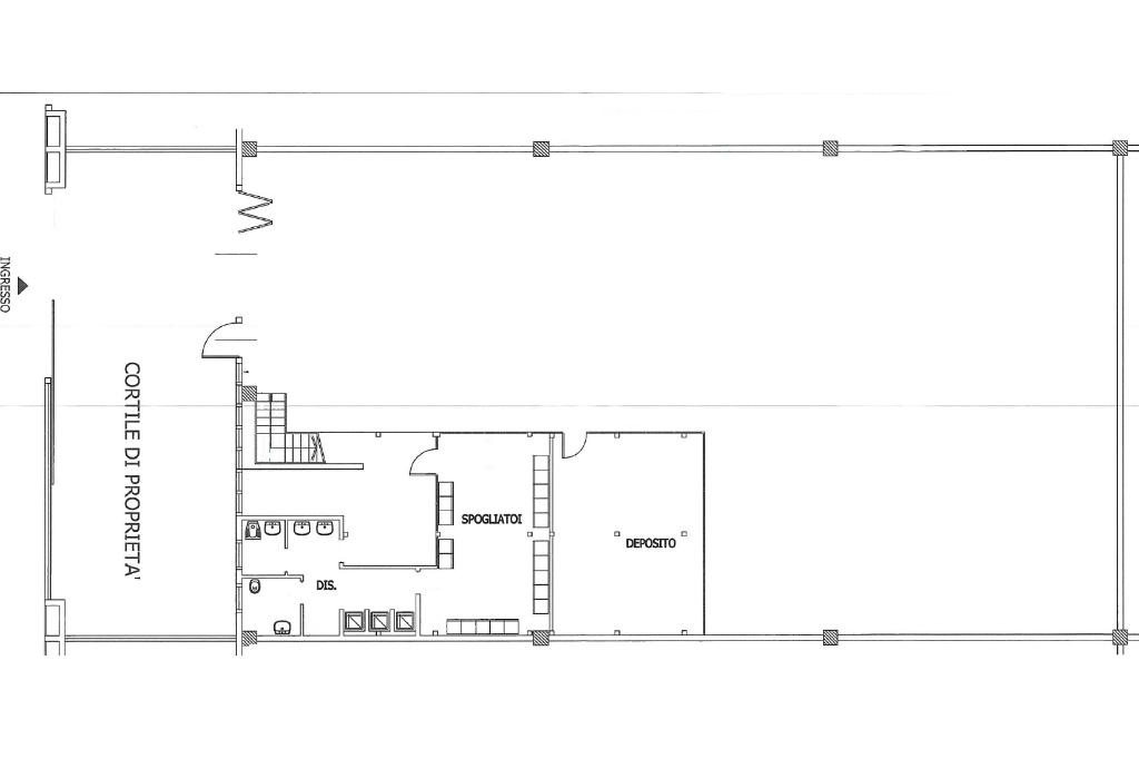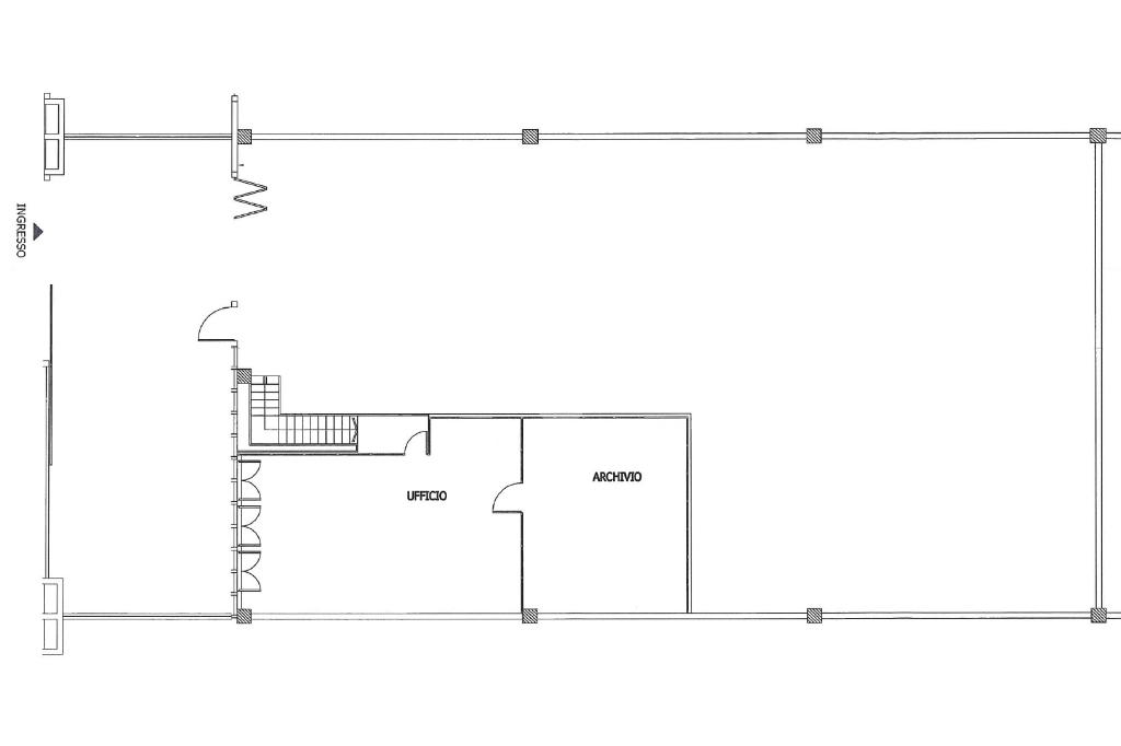 Il capannone misura complessivamente 630 metri quadrati, ha un’altezza interna di 7,80 metri ed è accessibile tramite un portone alto 4,30 metri. La zona adibita a capannone misura 450 metri quadrati, si sviluppa su un’unica campata ed è dotata di mensole.