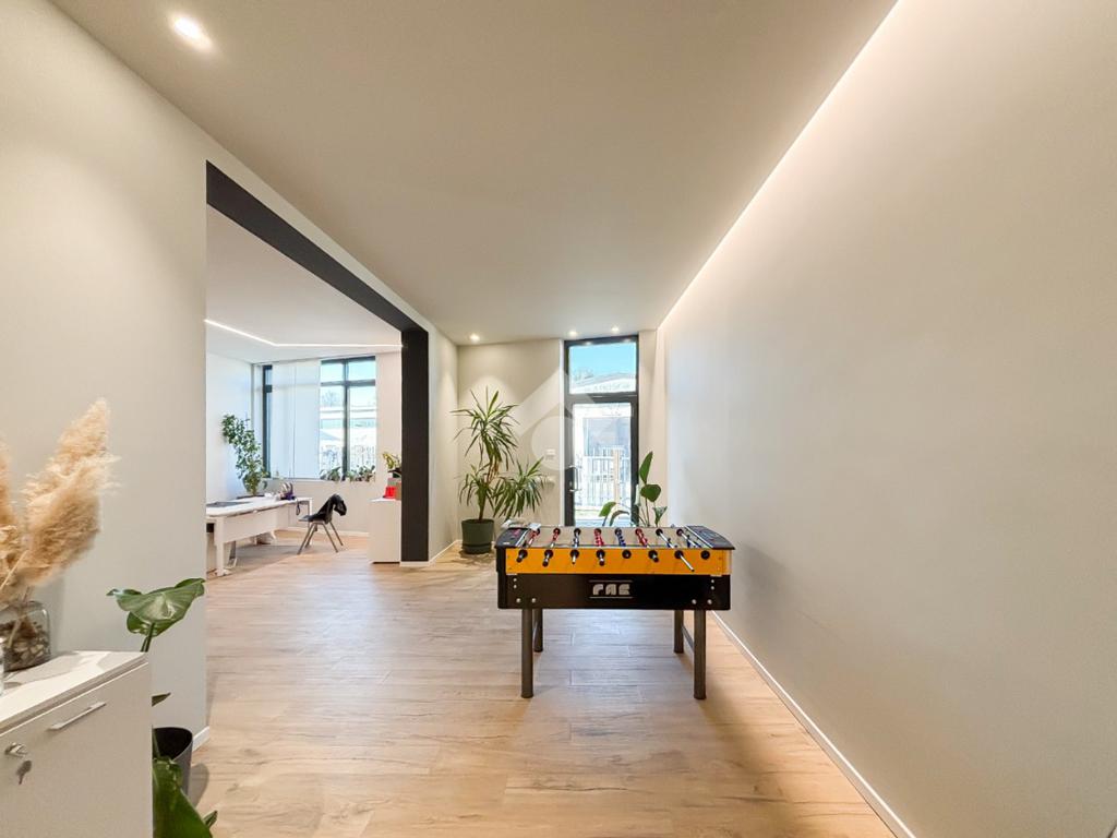 La soluzione è dotata di impianto elettrico e di illuminazione ed è predisposta per l’installazione di un impianto di allarme. Gli uffici sono serviti da impianto di riscaldamento e condizionamento autonomo e l’immobile è completo di due servizi igienici.